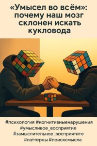 почему наш мозг склонен искать кукловода и делать кукловыводы Человеческий мозг обладает уникальной способностью наделять события намеренным смыслом. Мы повсюду распознаём шаблоны и предполагаем, что за ними стоят разумные силы с определёнными целями. Эволюционно это продолжение стратегии «лучше перестраховаться». Homo sapiens развил теорию разума — способность приписывать другим существам намерения — и начал видеть действующих …